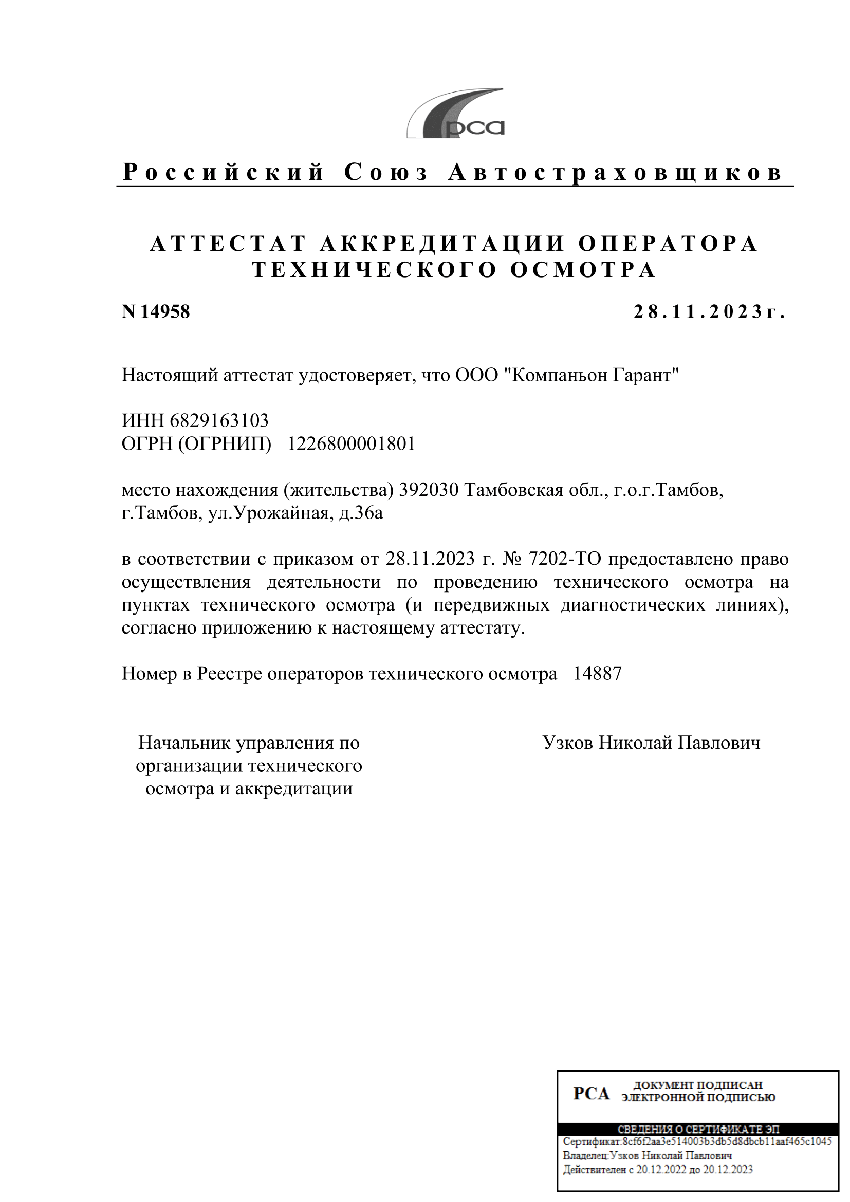 Официальный технический осмотр в пункте аккредитованном Российским Союзом Автостраховщиков (РСА)